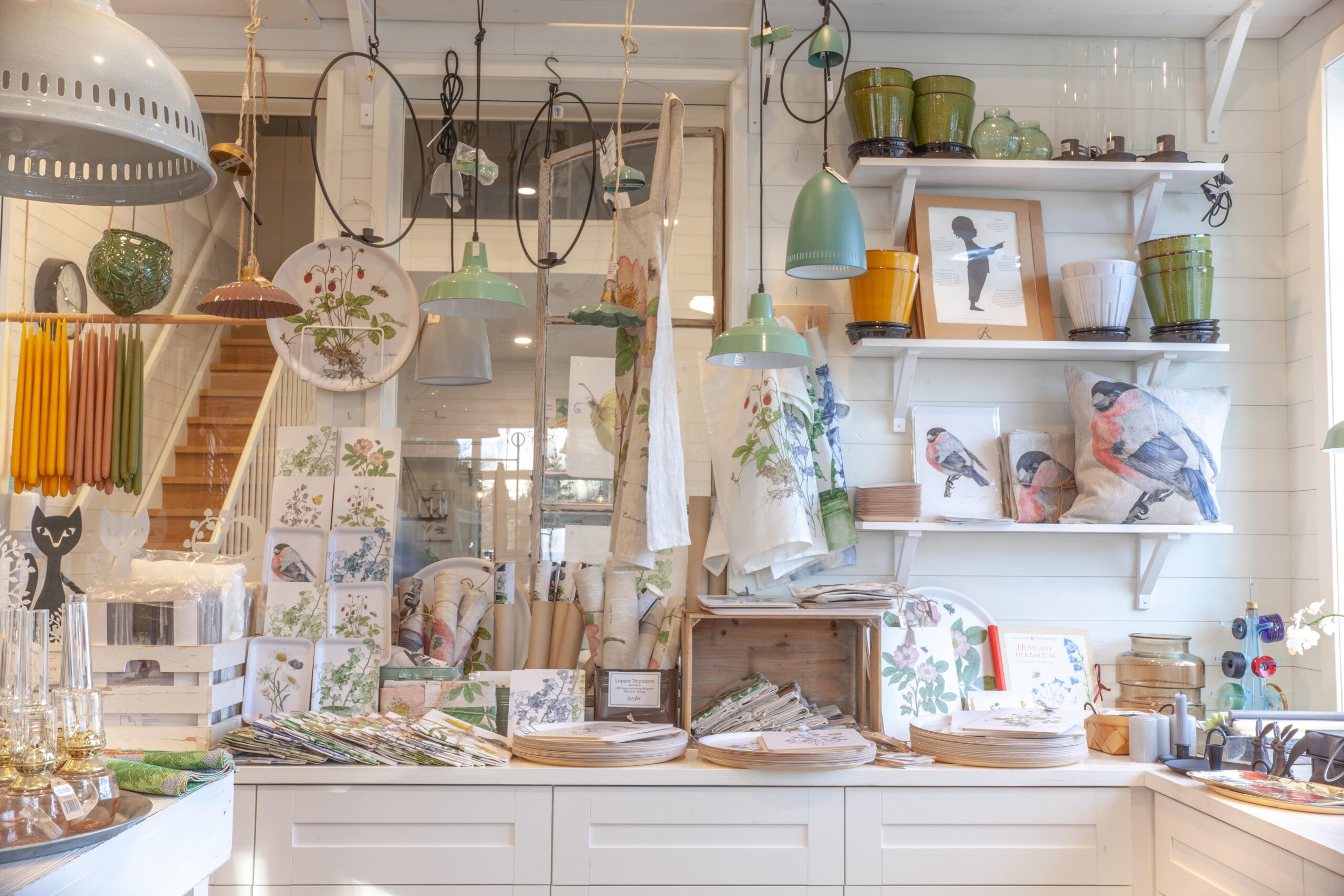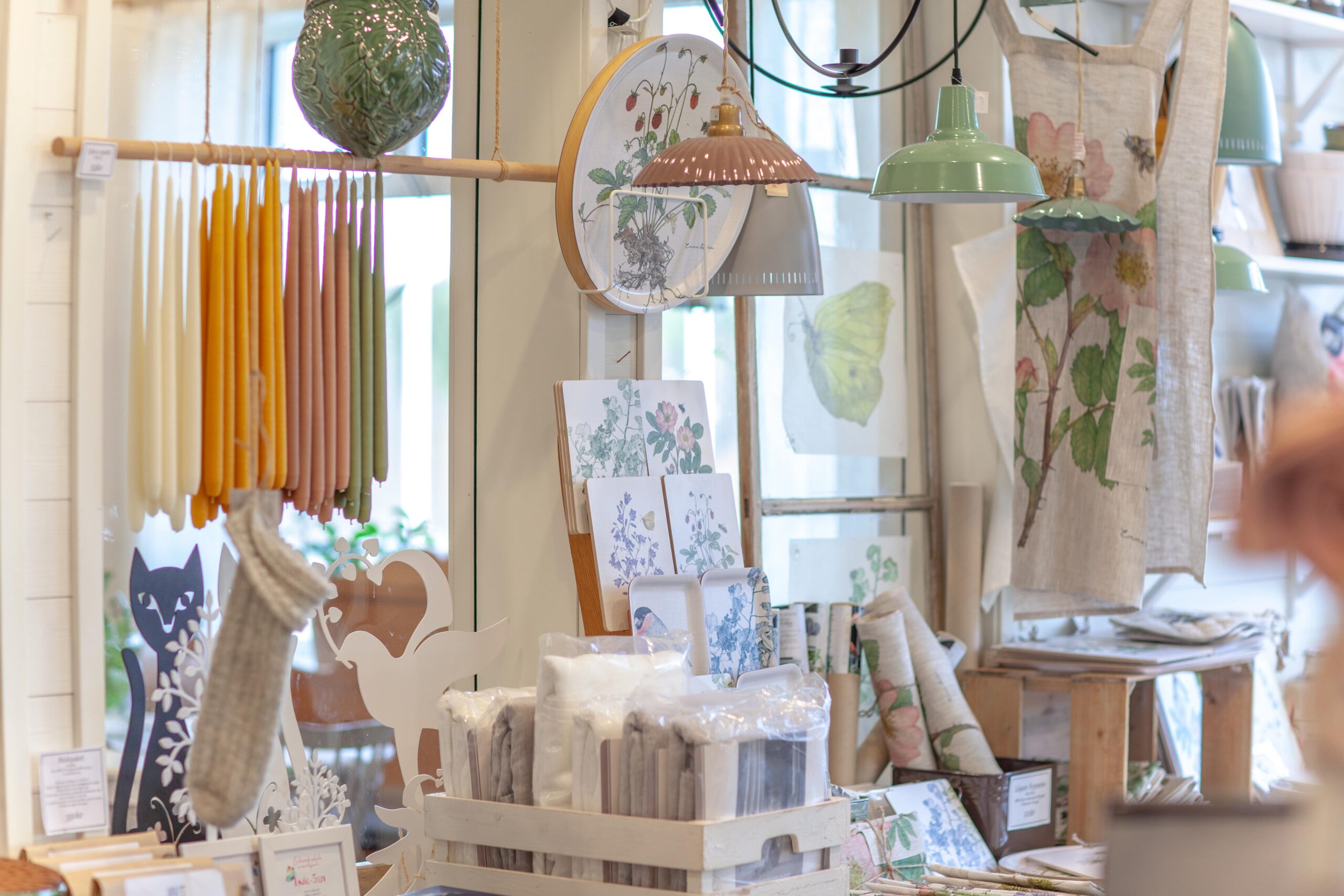 I vår butik finner du inredningsdetaljer som passar både för vardag och fest. Vi har ett stort sortiment som ständigt byts ut och förnyas. Butiken startade vi 2004 i en liten skala och den växer för varje år. För oss är det viktigt att tänka ekologiskt där det går. Vackra och användbara ting som pryder sin plats och funktion utan att vara allt för onödiga. Hållbart och vackert i torpstil. Leksaker finns också. Vi har ett stort utbud av Mumin och Astrid Lindgren. Dessutom ett stort utbud av retrogodis och mathantverk.